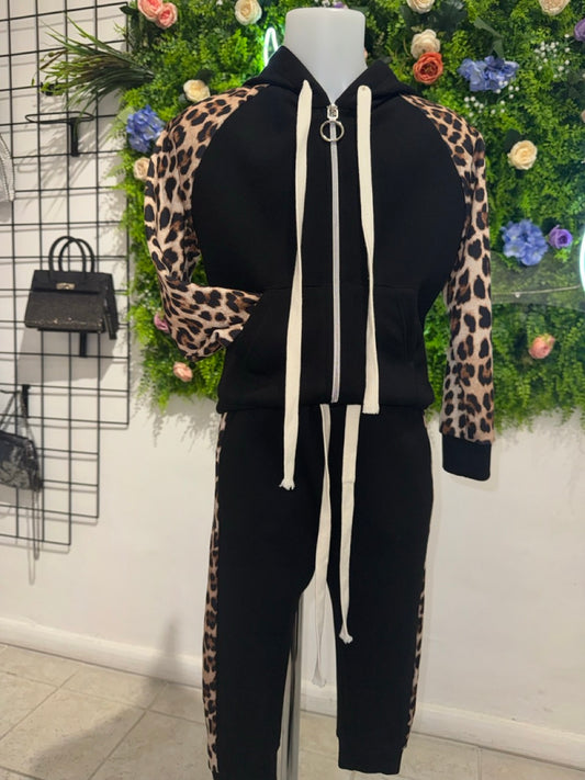 Completo in tuta nera con bande leopardate - GARZATO 4-12 anni