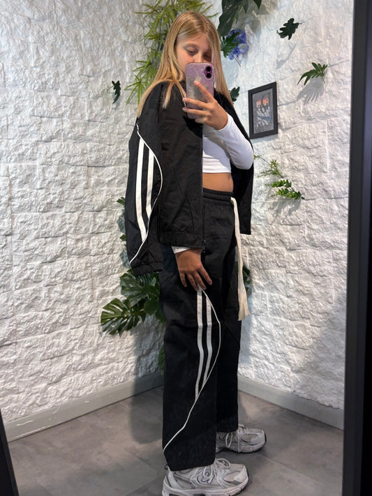 Completo nero in tessuto tecnico con bande laterali bianche 6-14 anni