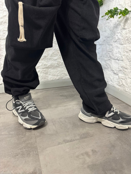 Pantalone cargo a costine nero con tasconi - GARZATO 10-16 anni
