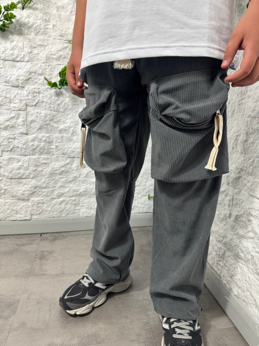Pantalone cargo a costine grigio piombo con fondo ampio - GARZATO 10-16 anni
