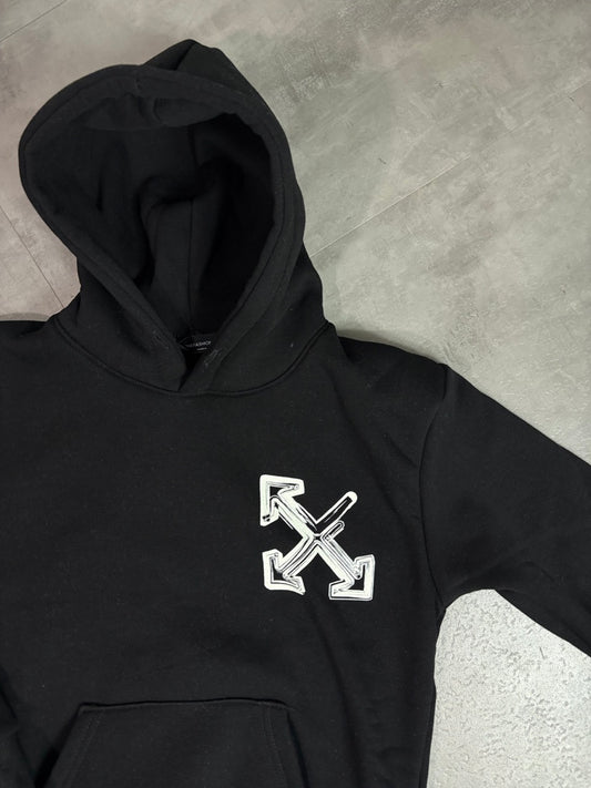Felpa nera con cappuccio e maxi stampe a croce - FELPATO 10-16 anni