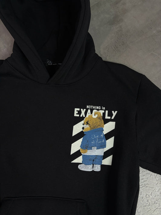Felpa nera con cappuccio e stampa con orso "EXACTLY" - FELPATO 10-16 anni