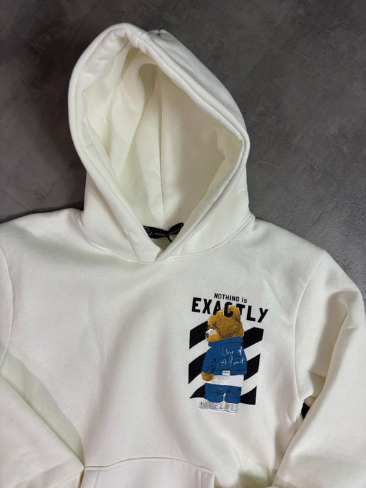 Felpa bianca con cappuccio e stampa con orso "EXACTLY" - FELPATO 10-16 anni