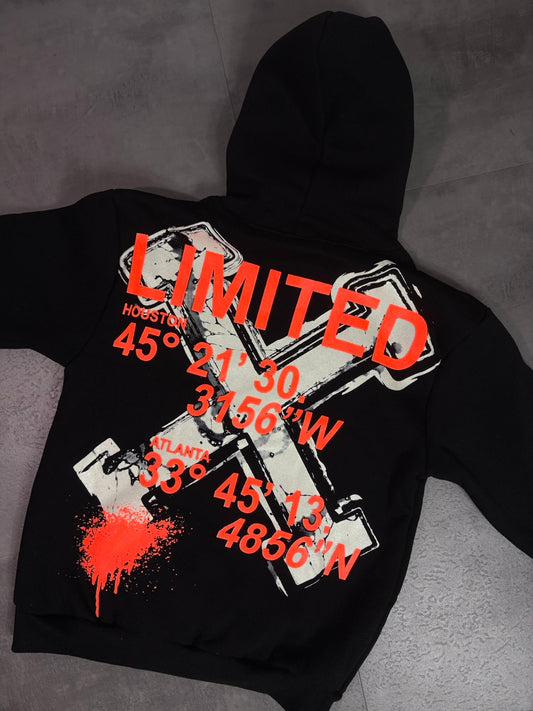 Felpa nera con cappuccio e stampa "LIMITED" fluo - FELPATO 10-16 anni