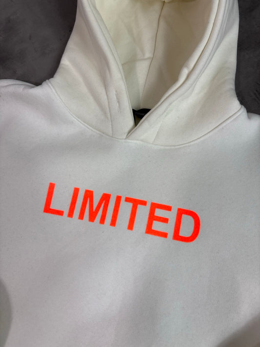 Felpa bianca con cappuccio e stampa "LIMITED" fluo - FELPATO 10-16 anni