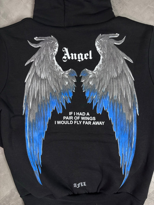 Felpa nera con cappuccio e stampa con ali "ANGEL" - FELPATO 10-16 anni