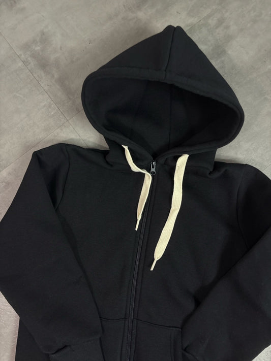 Felpa nera con cappuccio e zip con lacci lunghi - FELPATO 10-16 anni