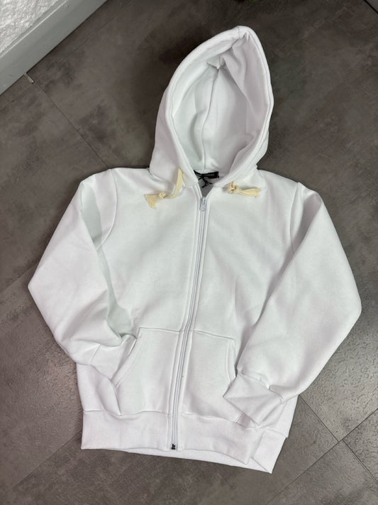 Felpa bianca con cappuccio e zip con lacci lunghi - FELPATO 10-16 anni