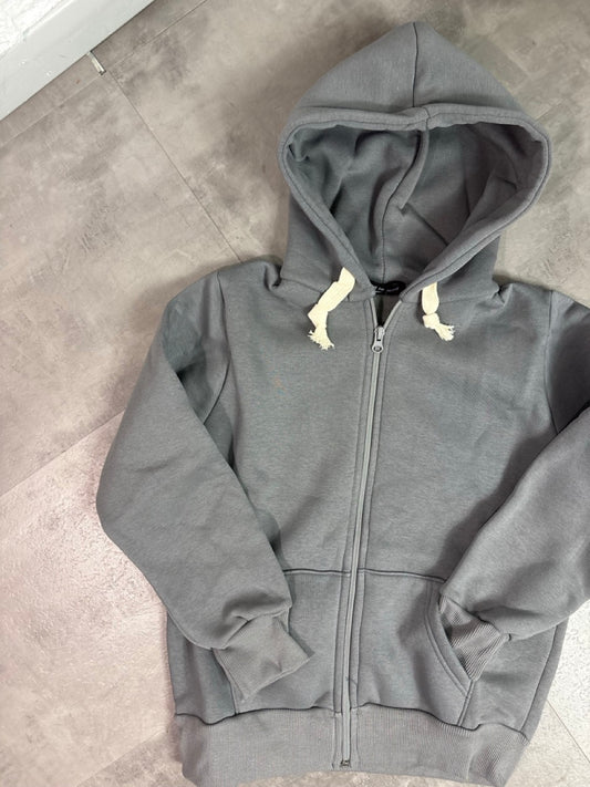 Felpa grigia con cappuccio e zip con lacci lunghi - FELPATO 10-16 anni