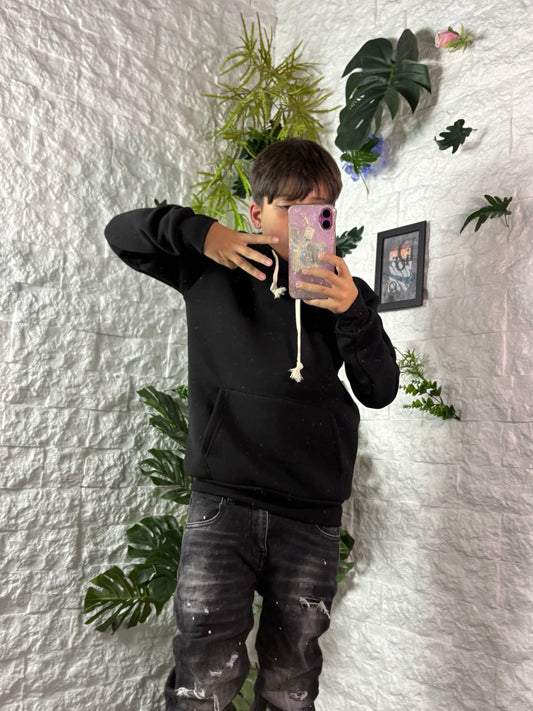 Felpa nera con cappuccio e tasca frontale - FELPATO 10-16 anni