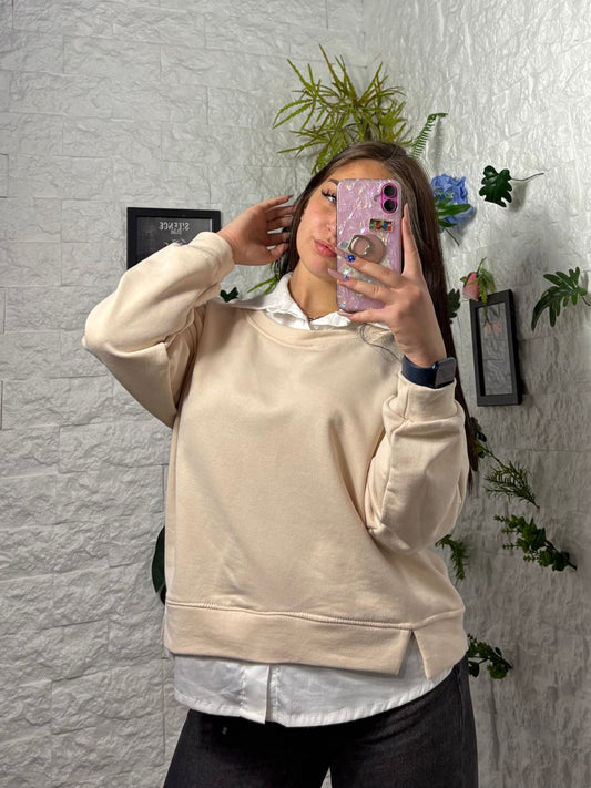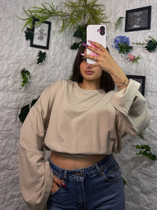 Felpa crop in tinta unita con maniche a campana - GARZATO