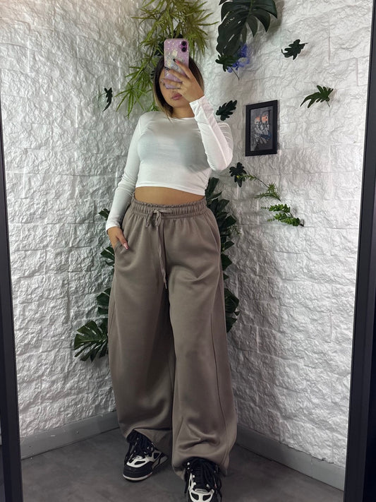 Pantalone in felpa balloon con tasche e vita con lacci - OVERSIZE