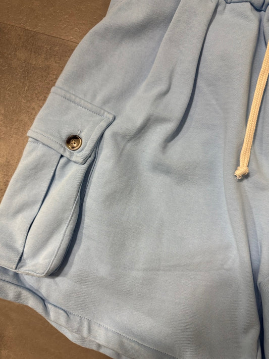 Pantaloncino cargo celeste in cotone con tasche laterali