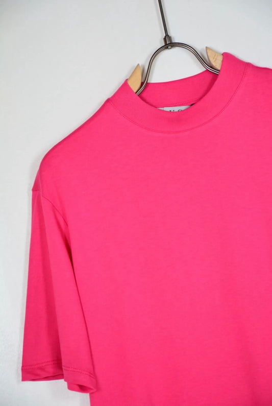 T-shirt fucsia in tinta unita con mezzo collo alto