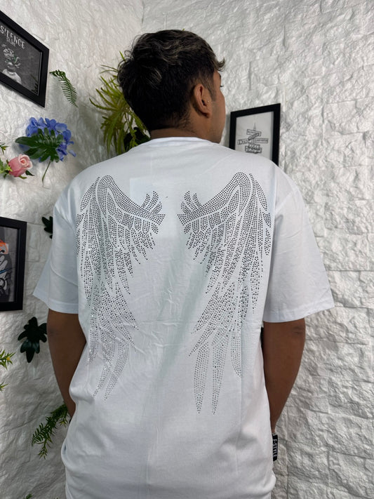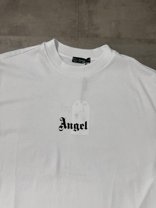 T-shirt bianca con stampa ali e scritta "ANGEL" - OVERSIZE