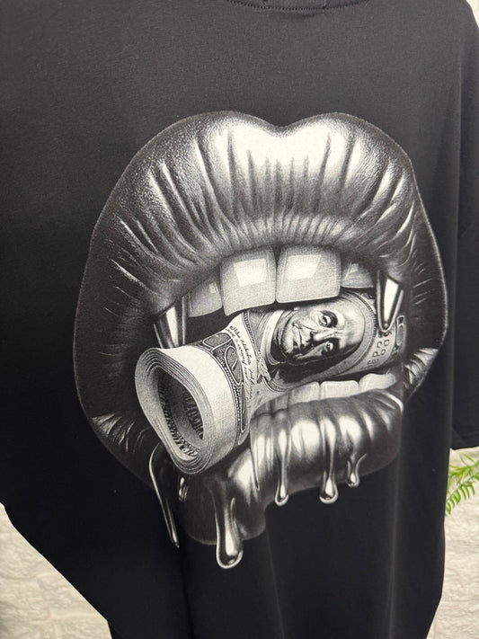 T-shirt nera in tinta unita con mezzo collo alto e stampa "MONEY"